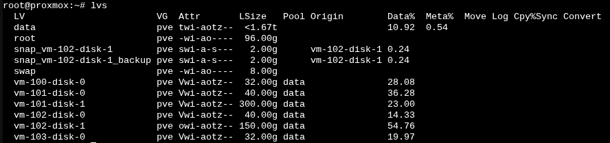 We can also list all logical volumes with lvs: