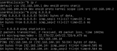 Now able to ping 8.8.8.8 and local VMs on the subnet like 192.168.100.10 (immich).